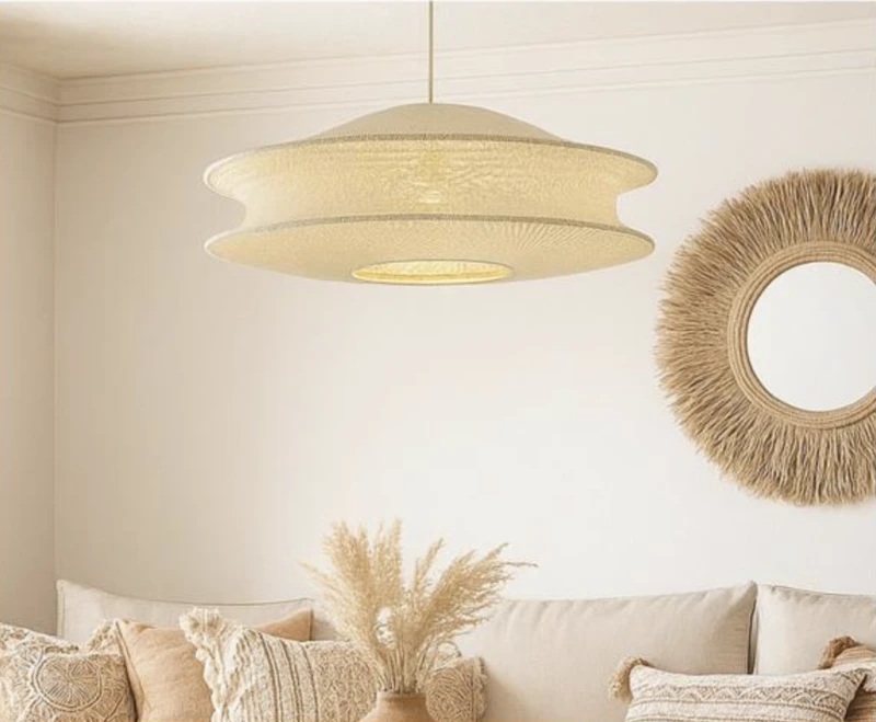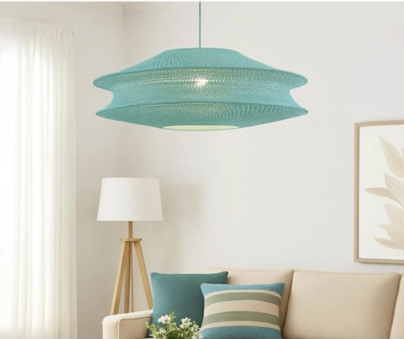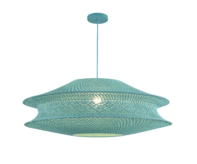 מנורת תלייה מקרמה תליה טורקיז / קרם קוטר 80
