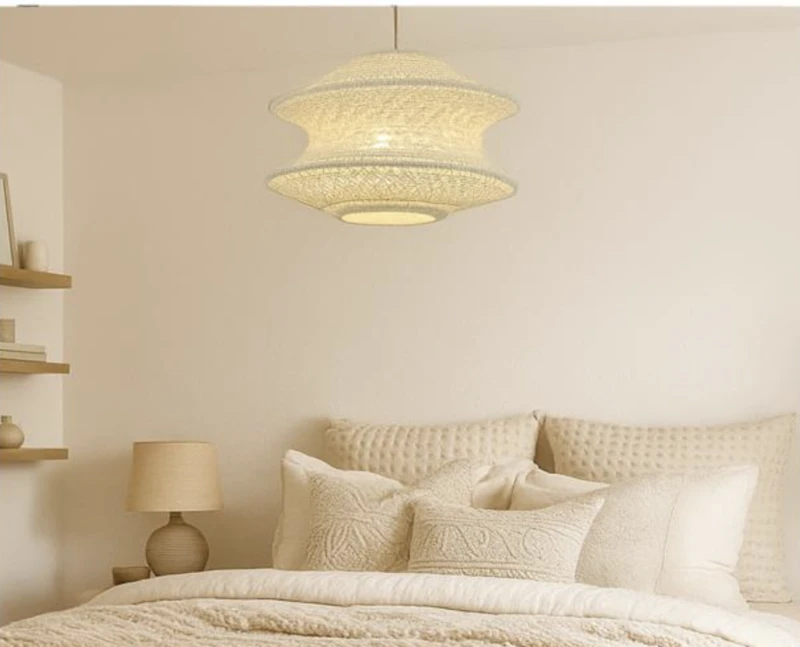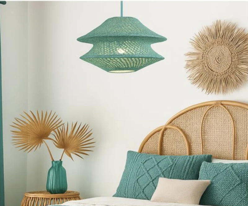 מנורת תלייה מקרמה תליה טורקיז / קרם קוטר 40