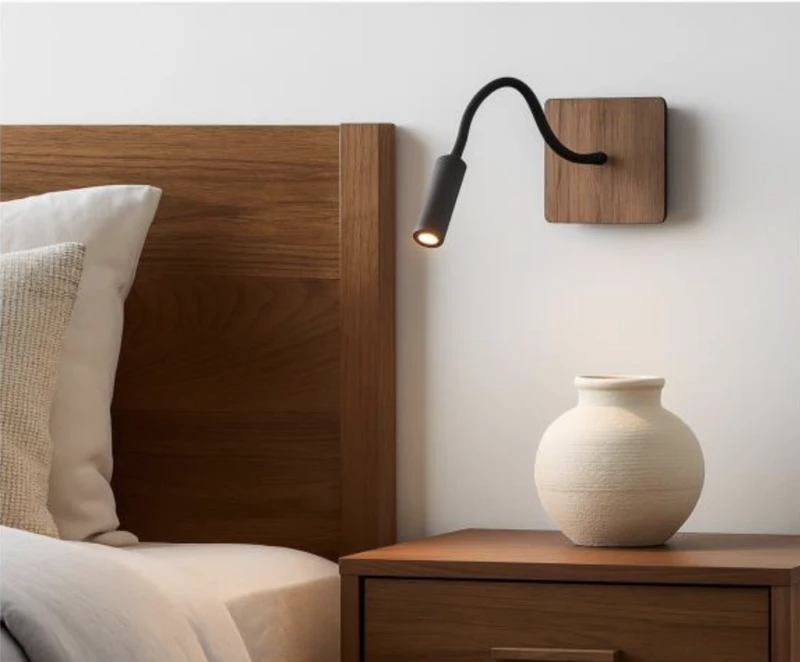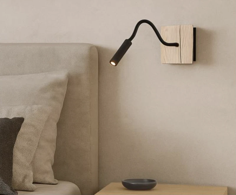 מנורת קיר קריאה עיצוב עץ כהה/בהיר