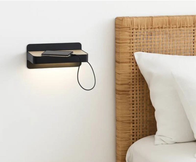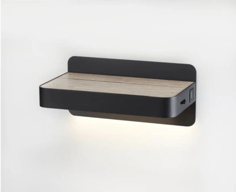 מנורת קיר מדף עם הטענת USB לחדר שינה שחור/לבן