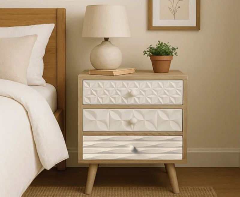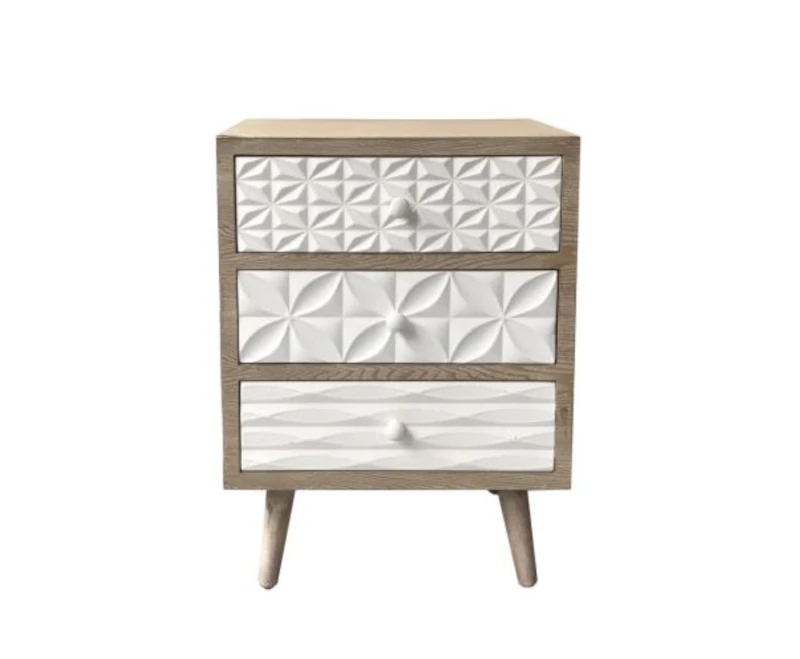 שידת 3 מגירות לצידי המיטה לבן בשילוב עץ דגם באלי