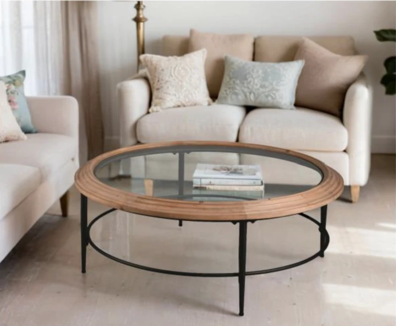 שולחן עגול עץ בשילוב זכוכית לסלון דגם גאיה