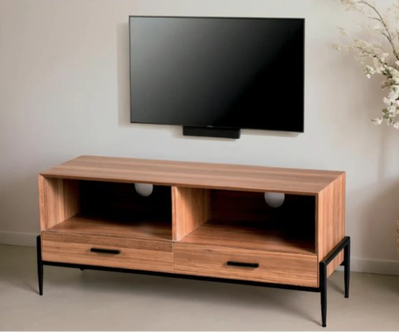 שידת עץ לטלויזיה עם מגירות ומדפים