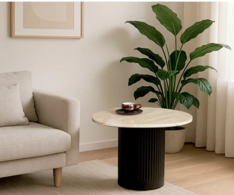 שולחן קפה עגול טרונטין קרם בשילוב שחור קטן