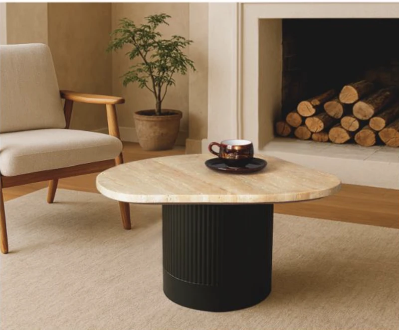 שולחן קפה עגול טרונטין קרם בשילוב שחור בינוני