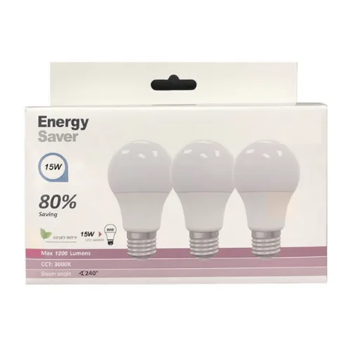שלישיית נורות יגואר אדיסון E27 15W / 10W אור חם/ קר (23342)